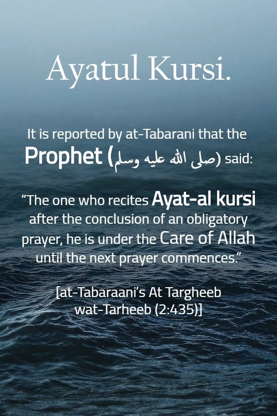 Ayat al-Kursi is regarded as one of the most powerful ayahs in the Quran because when it is recited, the greatness of God is believed to be confirmed. The person who recites this ayah morning and evening will be under protection of Allah from the evil of the jinns; this is also known as the daily adkhar.